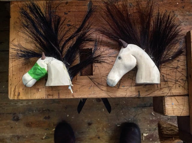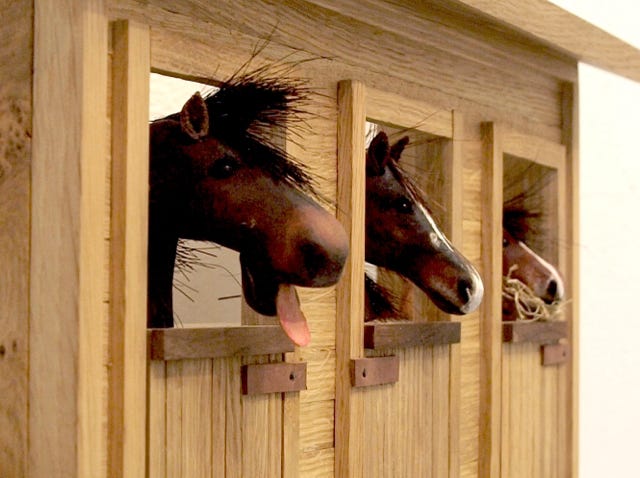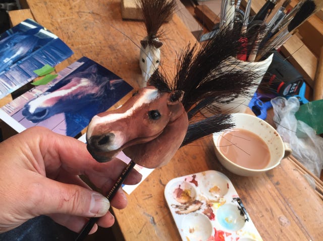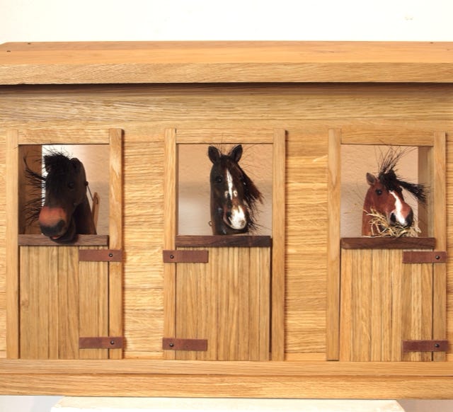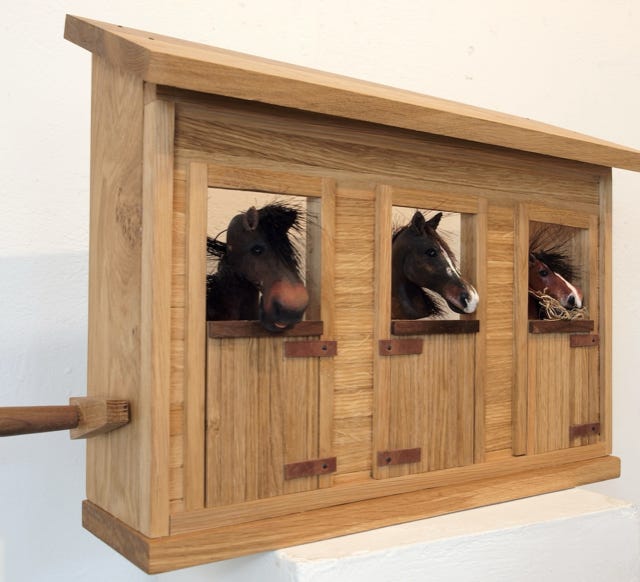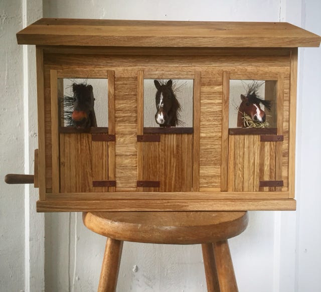 An automata of horses Bovril , Tiana and Gracie who live in the New Forrest. More about this commissioned piece here .